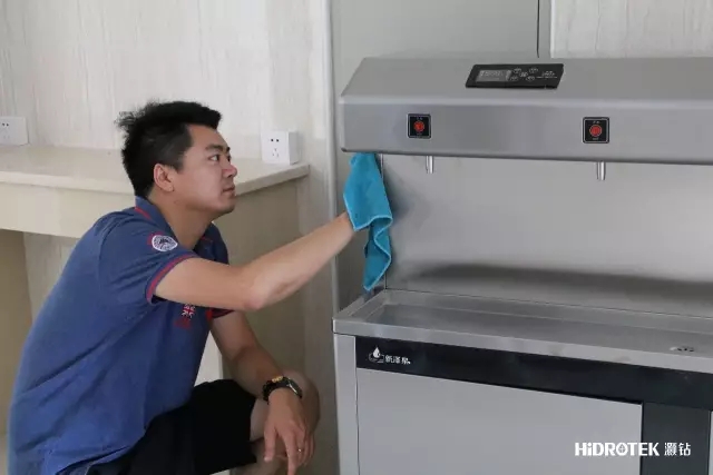 每一臺(tái)凈水設(shè)備,我們的工作人員都仔!細(xì)!擦拭干凈,真的一點(diǎn)污漬都不留。